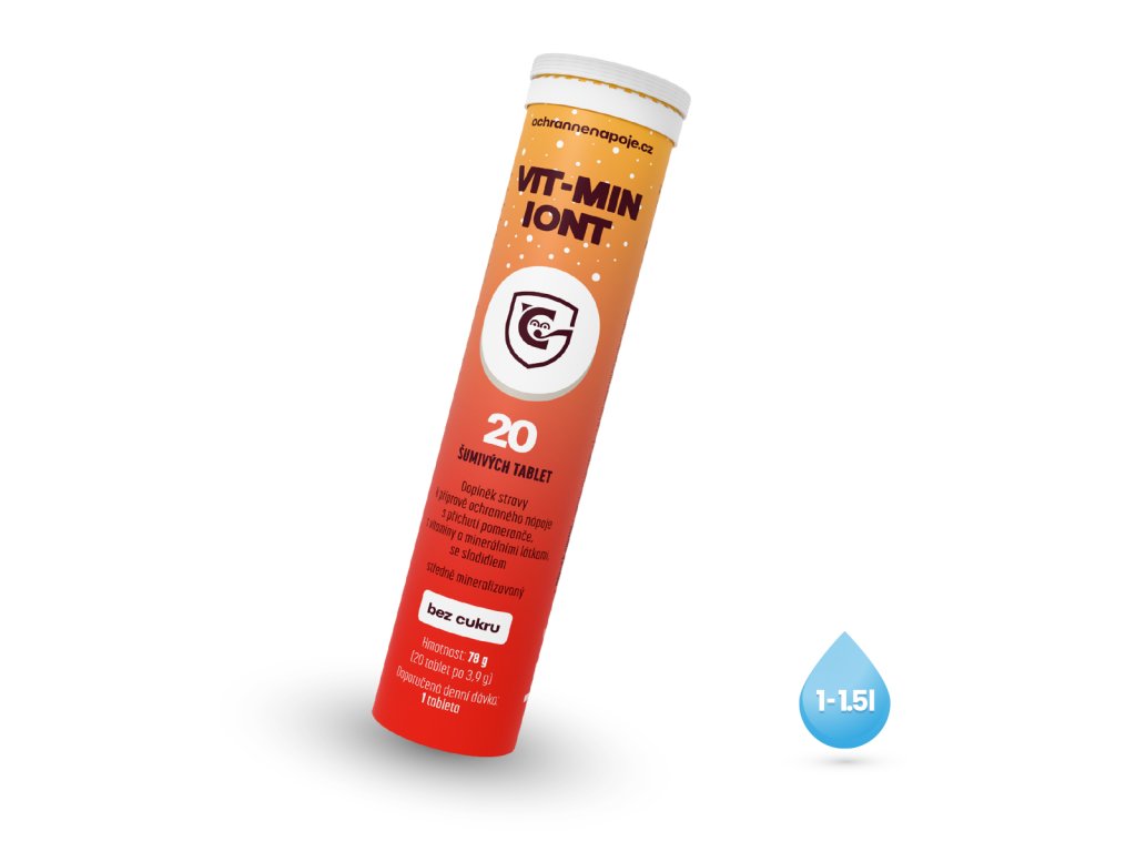 Doplněk stravy k přípravě ochranné nápoje s příchutí POMERANČE, s vitaminy a minerálními látkami, se sladidlem, středně mineralizovaný.
